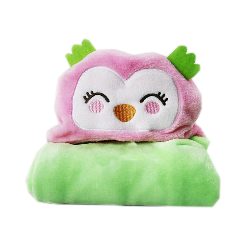 Βρεφική fleece κουβερτούλα με κουκούλα σε σχήμα κουκουβάγια από την εταιρεία Morven. Έχει ροζ-λαχανί χρώμα με εκρού-μαύρες λεπτομέρειες. Σύνθεση από 100% πολυεστερικό ύφασμα με απαλό και ζεστό άγγιγμα. Ιδανική για τους χειμερινούς μήνες.