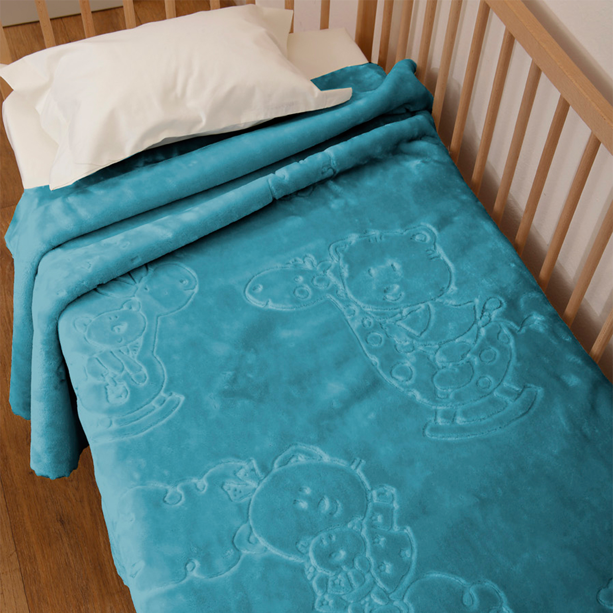 Βρεφική βελουτέ κουβέρτα για την κούνια του μωρού σας σε πετρόλ χρώμα και ανάγλυφο σχέδιο αρκουδάκι από την εταιρεία Anna Riska. Σύνθεση από 100% polyester βάρους 620gsm που προσφέρει πολύ μαλακή και απαλή υφή. Κατάλληλη για τους χειμερινούς μήνες.