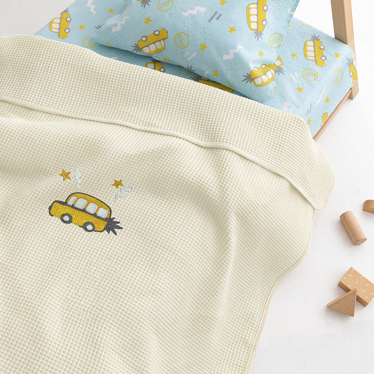 Βρεφική πικέ κουβέρτα από την εταιρεία Palamaiki για το λίκνο ή την αγκαλιά. Σε εκρού χρώμα και κεντητό σχέδιο αυτοκινητάκια. Η σύνθεσή της είναι 100% βαμβάκι βάρους 260gsm. Ιδανική για τους καλοκαιρινούς μήνες.