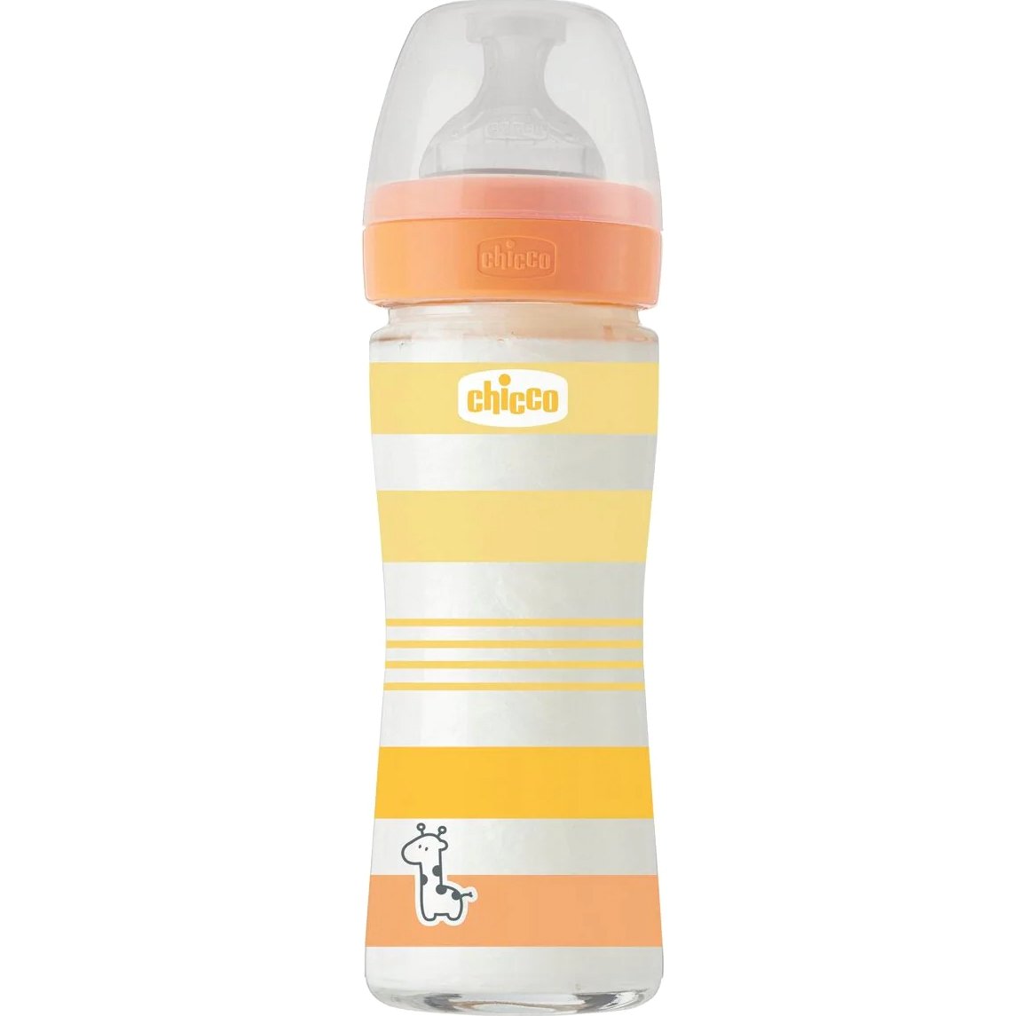 Chicco Well-Being Unisex Γυάλινο Μπιμπερό με Θηλή Αργής Ροής 0m+ Πορτοκαλί - Κίτρινο 240ml
